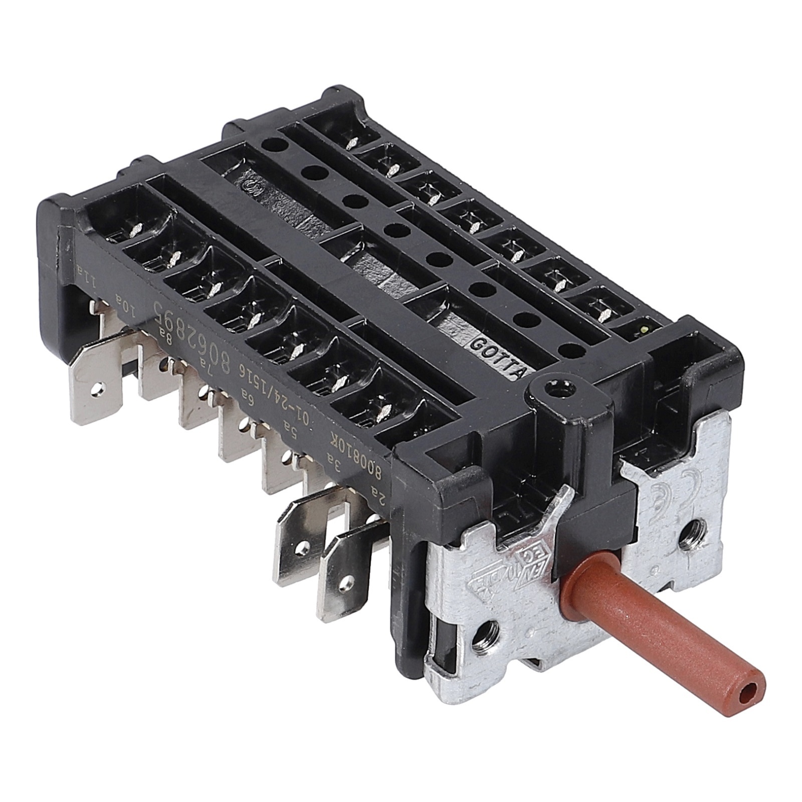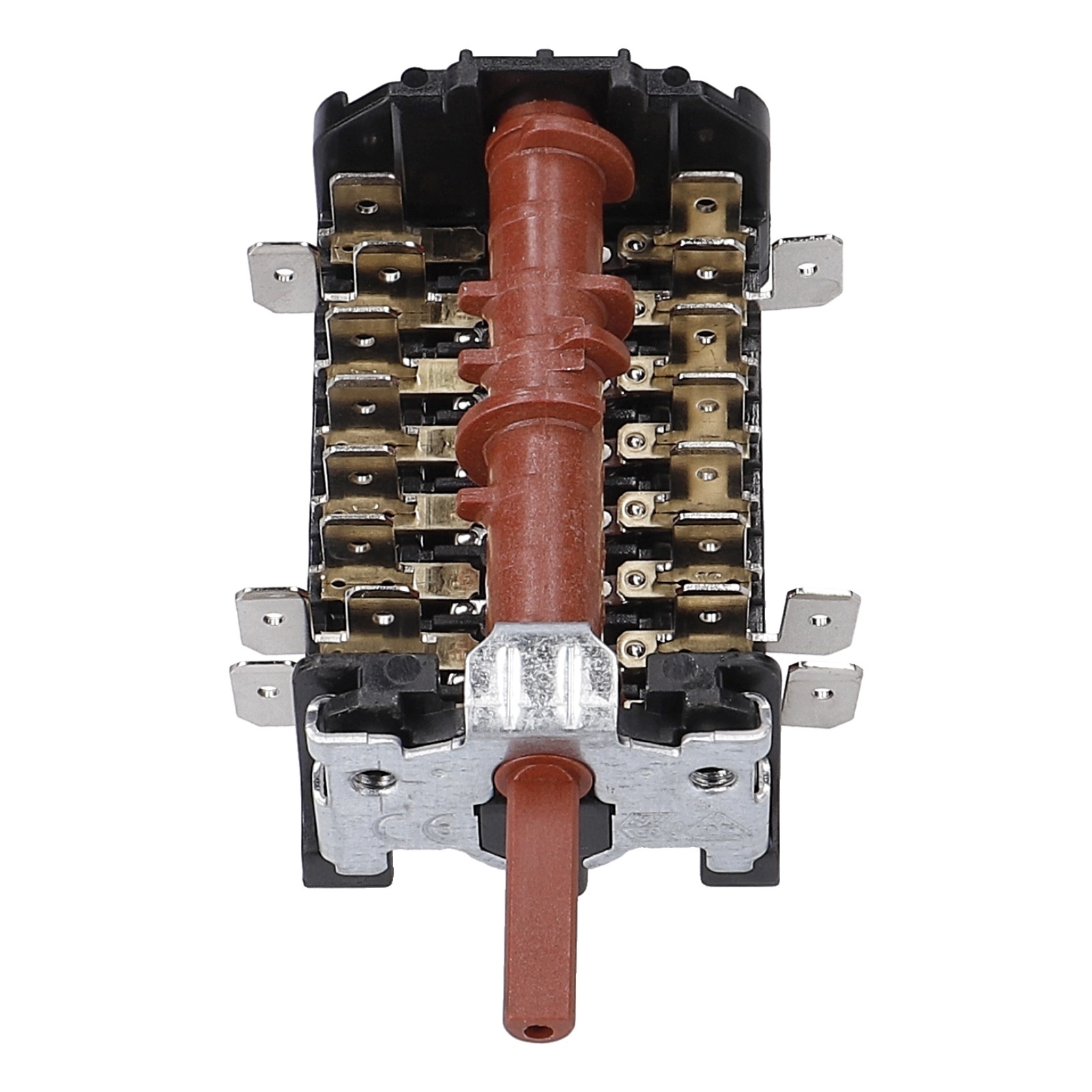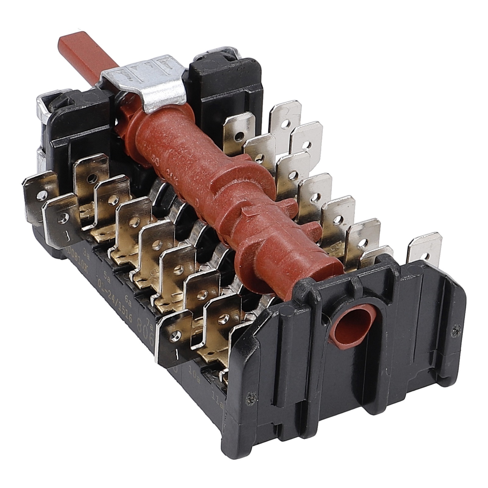 Mit dem Wahlschalter werden die Backofenfunktionen wie Unterhitze, Oberhitze, Grill etc. eingestellt. Der Schalter ist hinter der Bedienblende im Einbaubackofen und im Standherd eingebaut.