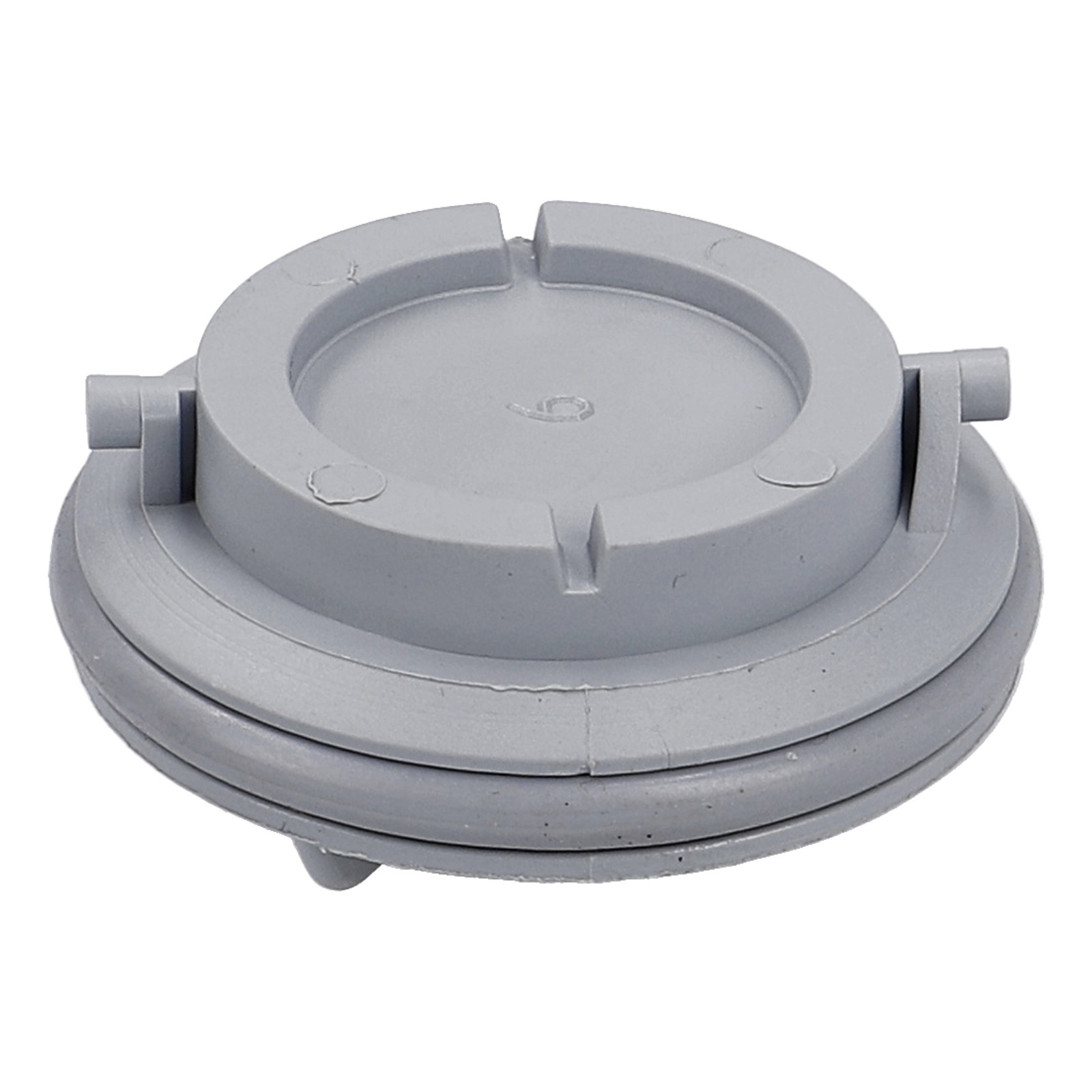 Diese graue runde Abdeckung ist in der Dosierkombination der Spülmaschine eingesetzt.