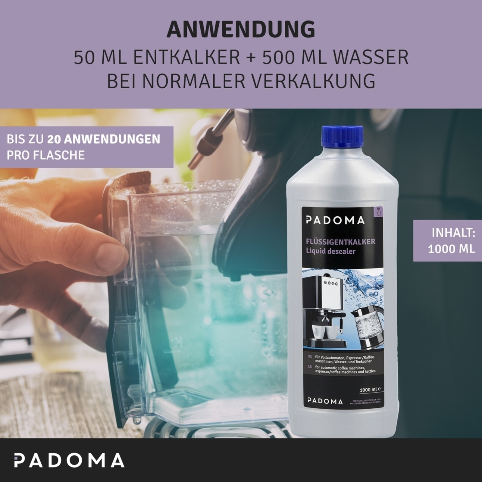 Produktinformationen "Flüssigentkalker PADOMA 10090133 für Kaffeemaschine Wasserkocher 1000ml"