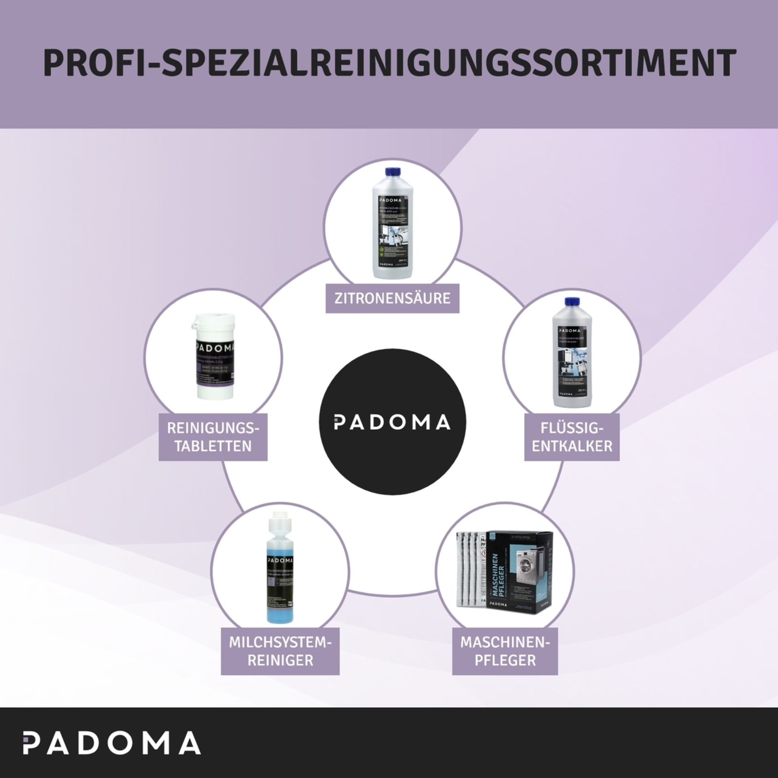PADOMA 10090133 Entkalker für den Kaffeevollautomaten, die Espressomaschine, die Filterkaffeemaschine, den Wasserkocher und den Teekocher.