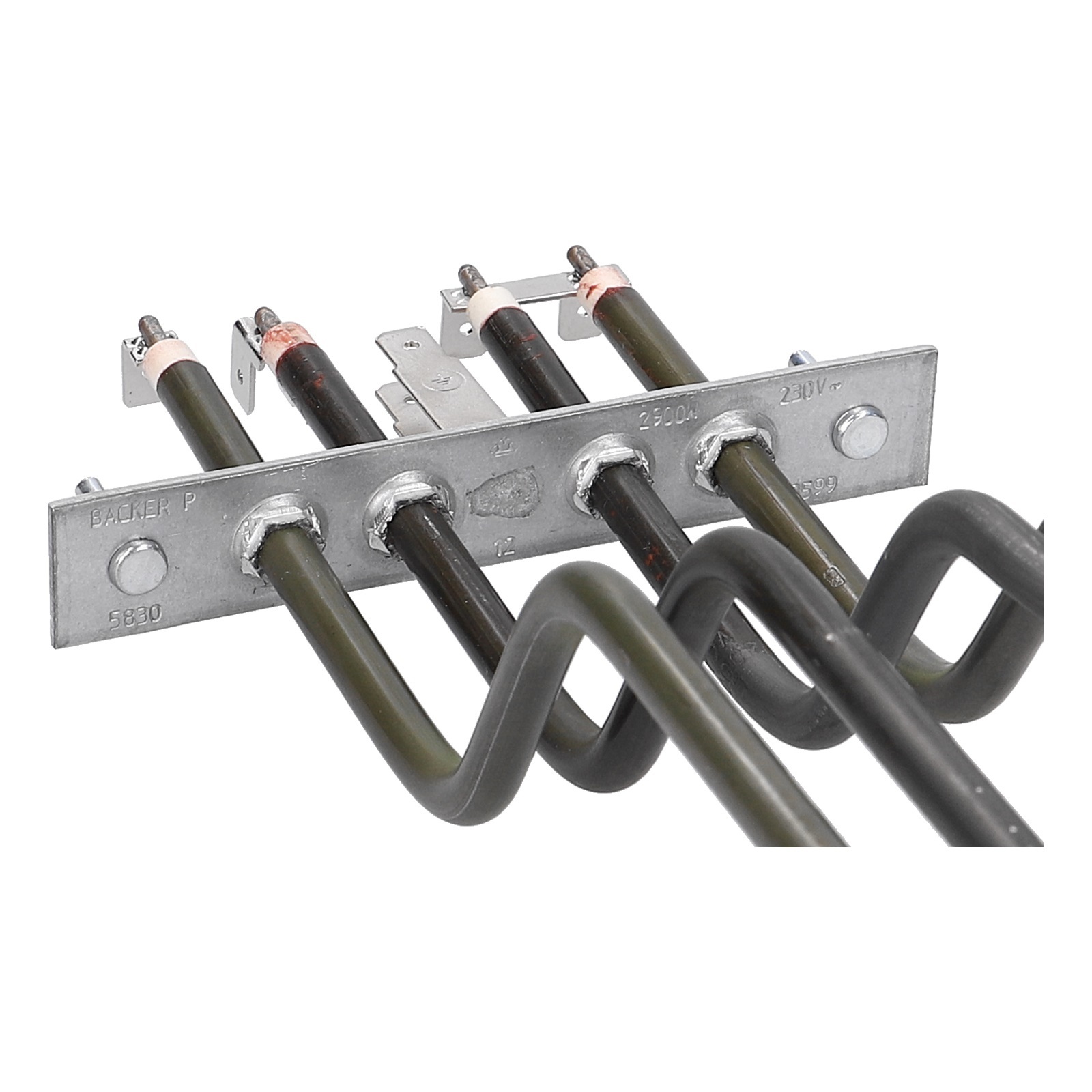 Das Heizelement mit 2 Heizkreisen ist für die obere Hitze sowie die Grillfunktion zuständig. Es ist oben in der Decke vom Garraum im Herd eingebaut.