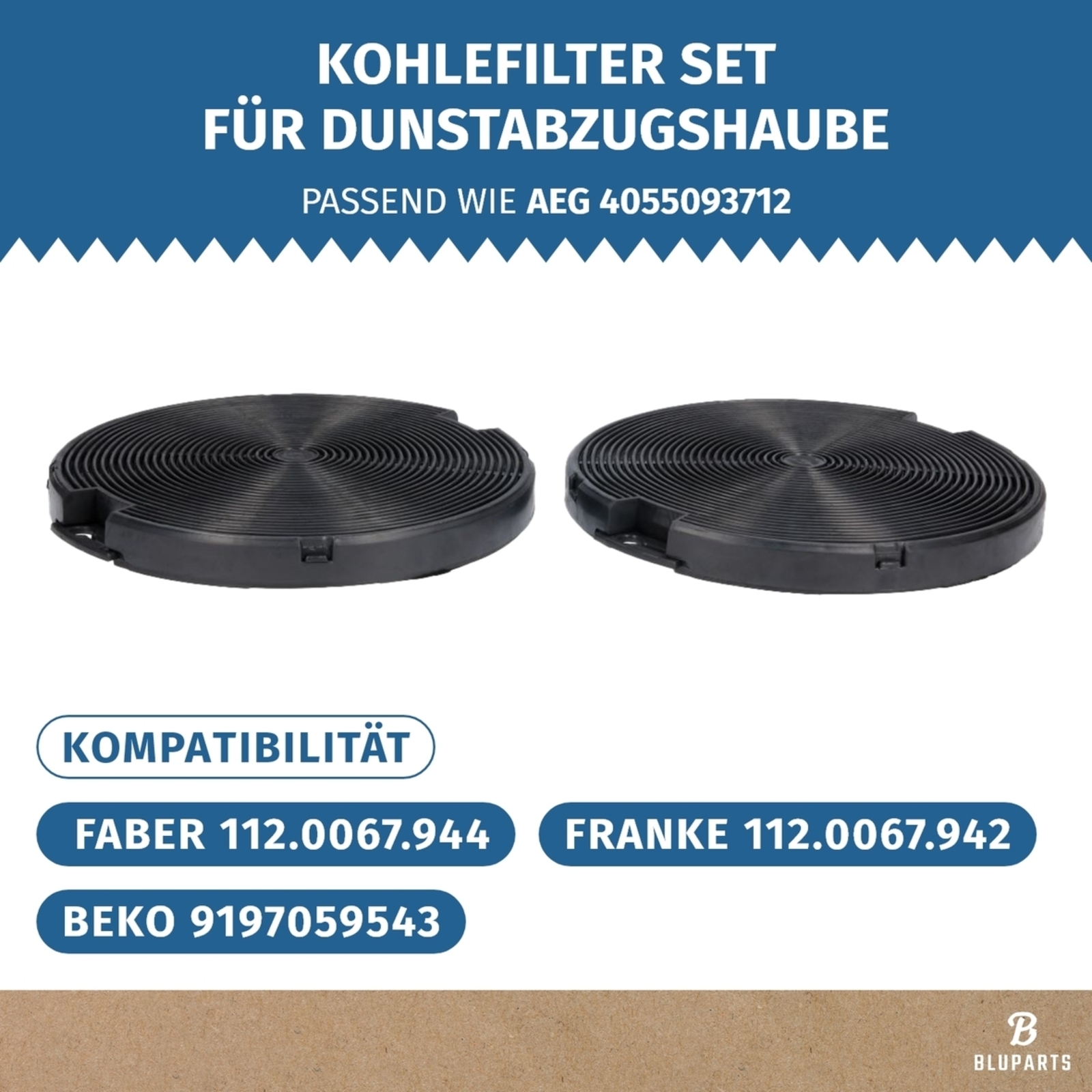 Kohlefilter passend für AEG 4055093712 EFF75 BLUPARTS von Dunstabzugshaube 2Stk