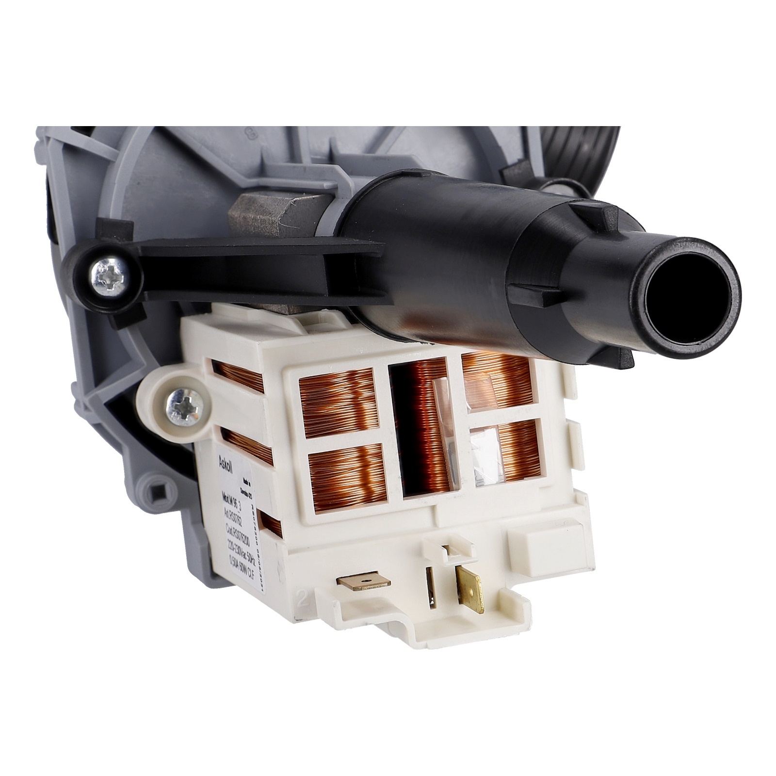 Die schwarze Pumpe dient als Hauptmotor in der Spülmaschine. Sie ist passend als Ersatz für die ggfs. eingebaute weiße Ausführung.